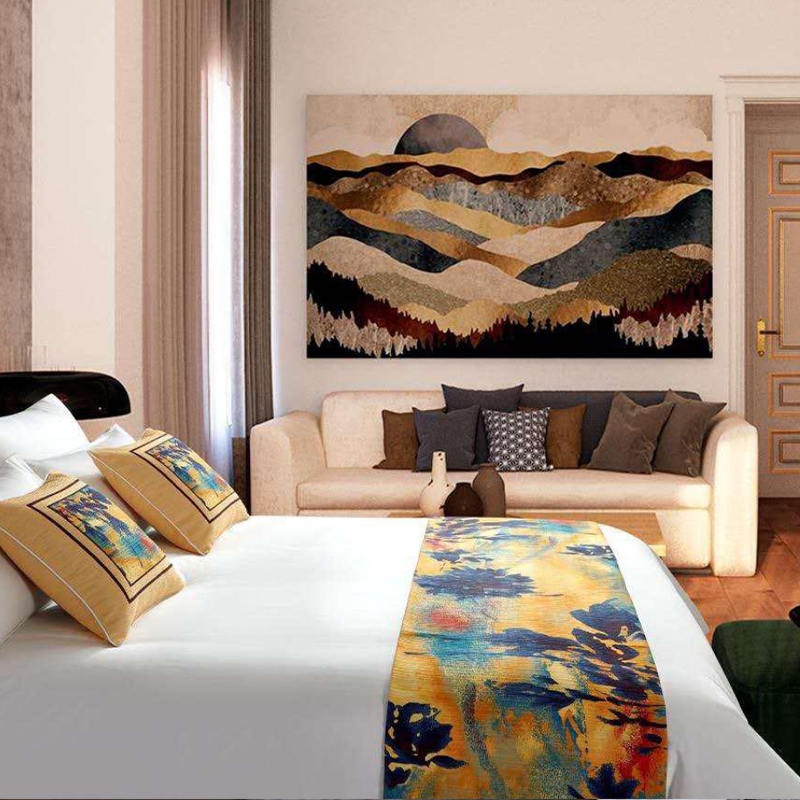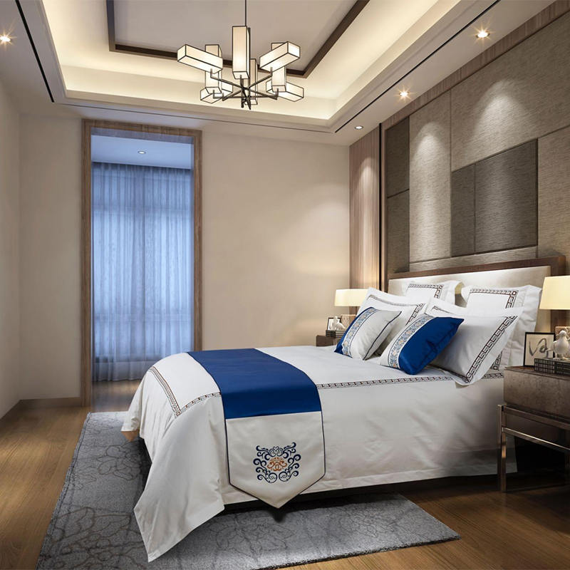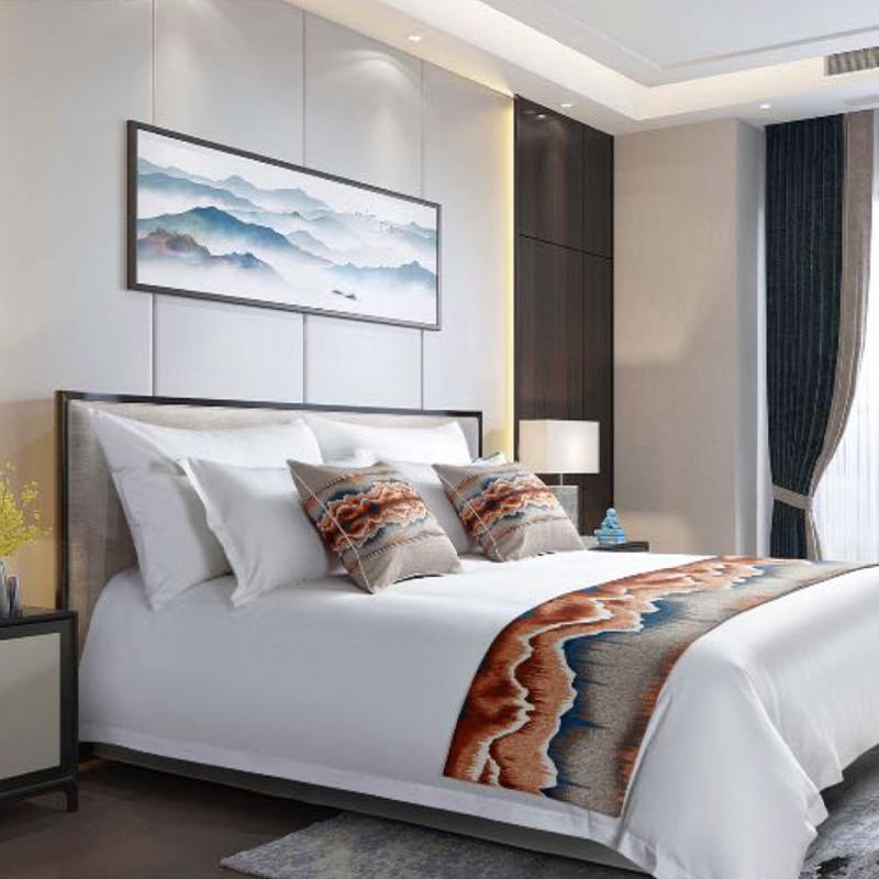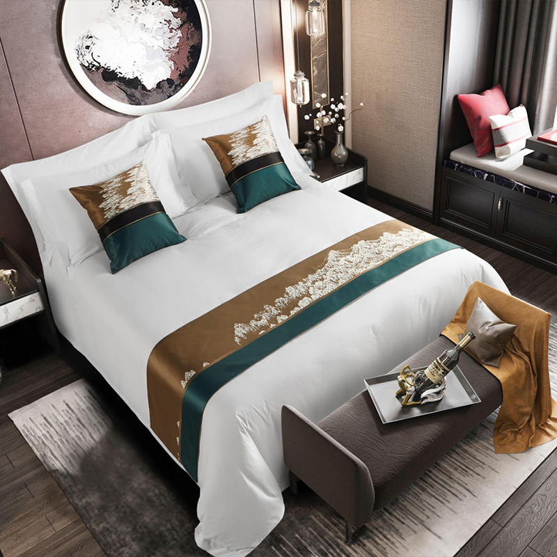 ホテルのベッドランナーは鮮やかな色で、さまざまなパターンがあり、通常は高品質の装飾生地で作られています。  ホテルのベッドランナーは、さまざまなデザインのマッチカラーで、寝具の全体的な美しさを高め、ホテルのスタイルと雰囲気を紹介します。ベッドランナーに印刷または刺繍のロゴやスローガンによって、ホテルのブランドイメージを表示するための効果的な宣伝ツールになることができます。  ホテルベッドランナーには、寝具を透明で整頓する機能もあります。
