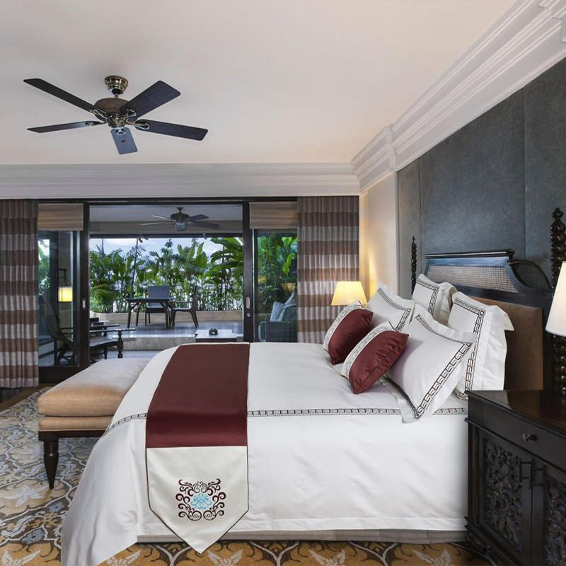 4。カスタマイズされたデザイン:ホテルは、独自のブランドイメージと顧客グループの特性に従ってデザインをカスタマイズして、ホテルのブランドスタイルとパーソナライズされたサービスを反映し、ゲストの好奇心と熱意を高めるユニークなベッドクロススタイルとパターンを作成できます。保持。